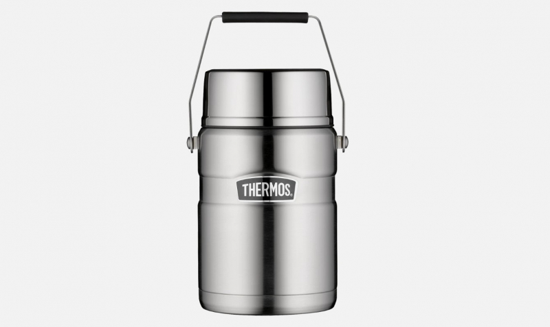 Mit dem besonders großen Isolier-Speisegefäß der Serie Stainless King von Thermos genießen Sie unterwegs große Portionen Ihrer selbst gemachten Gerichte.
