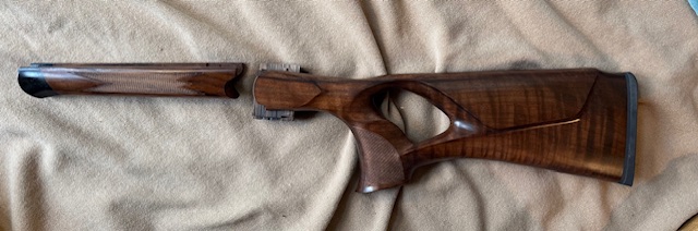 Blaser K 95 Lochschaft, neu, nie montiert, Verkauf wegen Projektaufgabe. Ausdruckstarkes wunderschönes Schaftholz, Edelholz Schaftabschluss, mit passendem Vorderschaft. Plug and Play für Blaser K 95, ohne Metallteile/Schnapper.