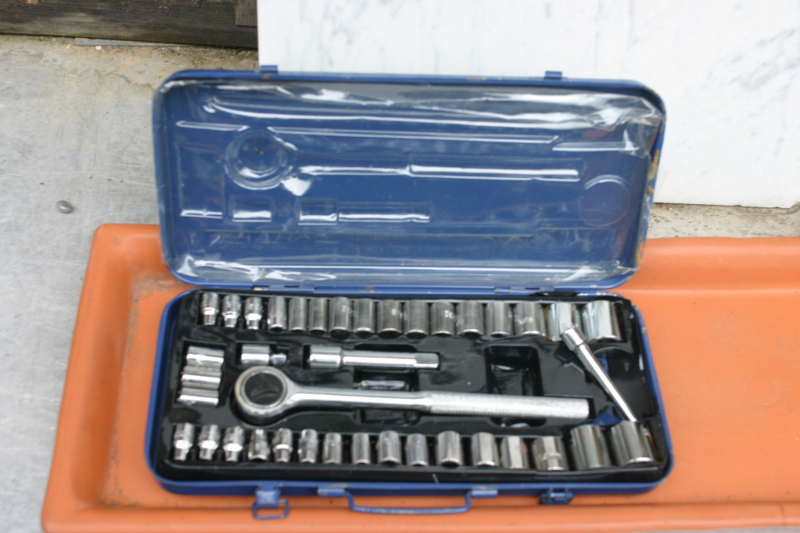Aus grossem Nachlass-- in stabilem Blechkasten --s Foto-- zöllige und metrische Nüsse---1,2 kg--wohl wenig genutzt nur rumgelegen--eine kurze Verlängerung hab ich noch dazugelegt---