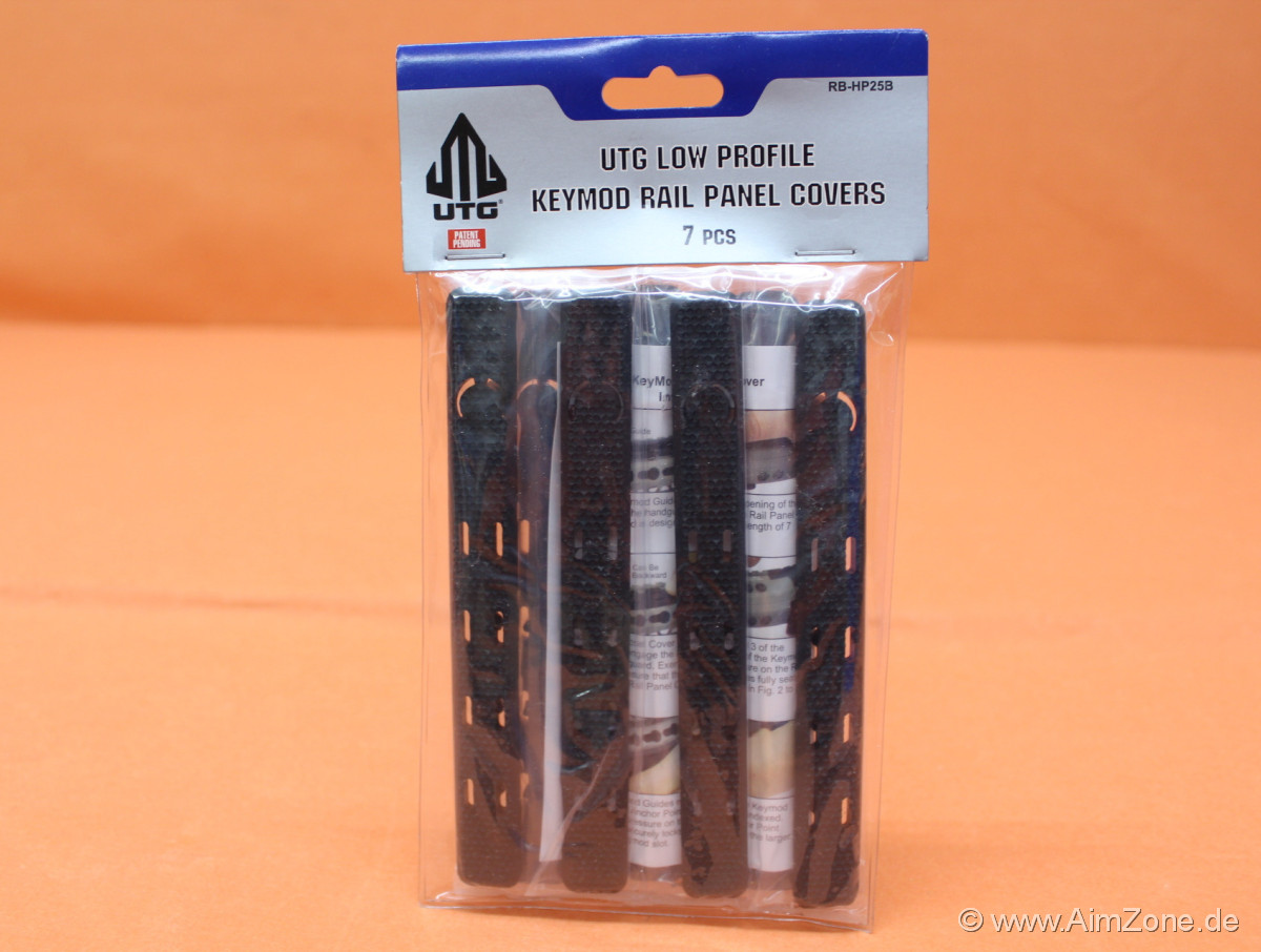 UTG KeyMod Rail Panel Cover Low Pofile (RB-HP25B) Black 5,5"/ 14cm Polymer 7pcs/ Railabdeckung B=ca. 16mm (VE 7 Stück).