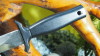 Die Scheide ist aus sehr stabilem dicken Sattelleder gefertig und hat einen Druckknopf mit "Thumb-Snap" so das diese einhändig geöffnet werden kann.