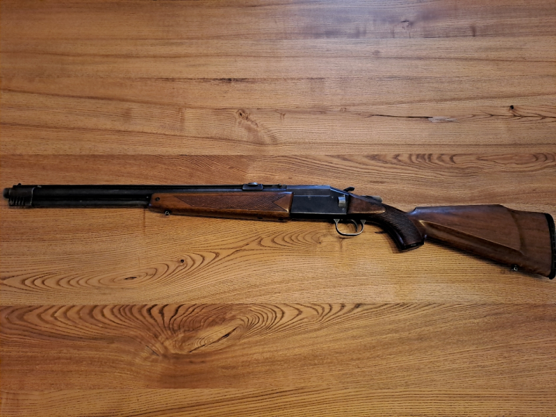 Die Wafffe hat alters- und nutzungsbdingte Gebrauchsspuren (siehe Bilder) und die Brünierung ist teilweise abgegriffen. Die Schaftkappe ist abgenutzt und sollte erneuert werden. Der Schrotlauf ist blank und mit einem 1/1 Wechselchoke bestückt. Der Kugellauf ist -soweit ich es beurteilen kann- leicht rau, bzw. weist Närbchen auf.