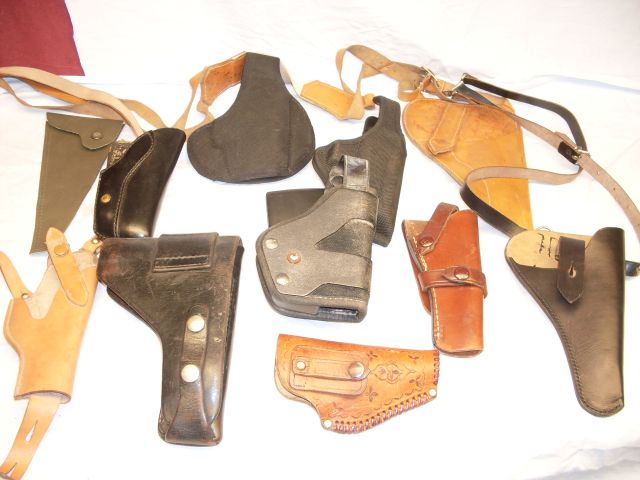 Sie bieten hier auf ein Konvolut von 10 Stück verschiedenen Holstern, dabei auch ein Walther PP Schulterholster. Gemischter Zustand von leicht bis stark getragen. Zustand gemäß Fotos. Details und Fragen bitte vor Ablauf der Auktion klären. Farbabweichung durch Blitzlicht möglich. Privatverkauf kein Rückgaberecht und Gewährleistung. Der Bieter erklärt sich durch sein Gebot mit diesen Bedingungen einverstanden. Verkauf und Versand nur innerhalb von Deutschland mit Hermes Paket versichert.