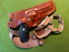 biete ich dieses schönes Schulter- Formholster aus stabilem rotbraunem Leder, offensichtlich für die o.g. Großrevolver und bauähnliche.