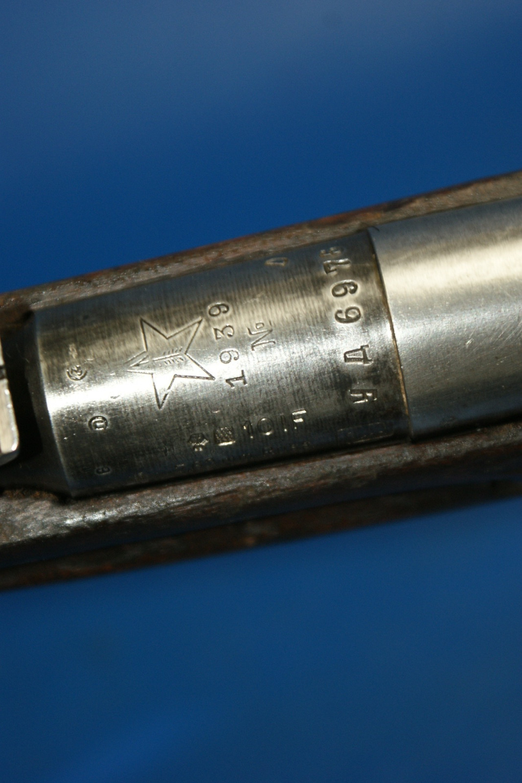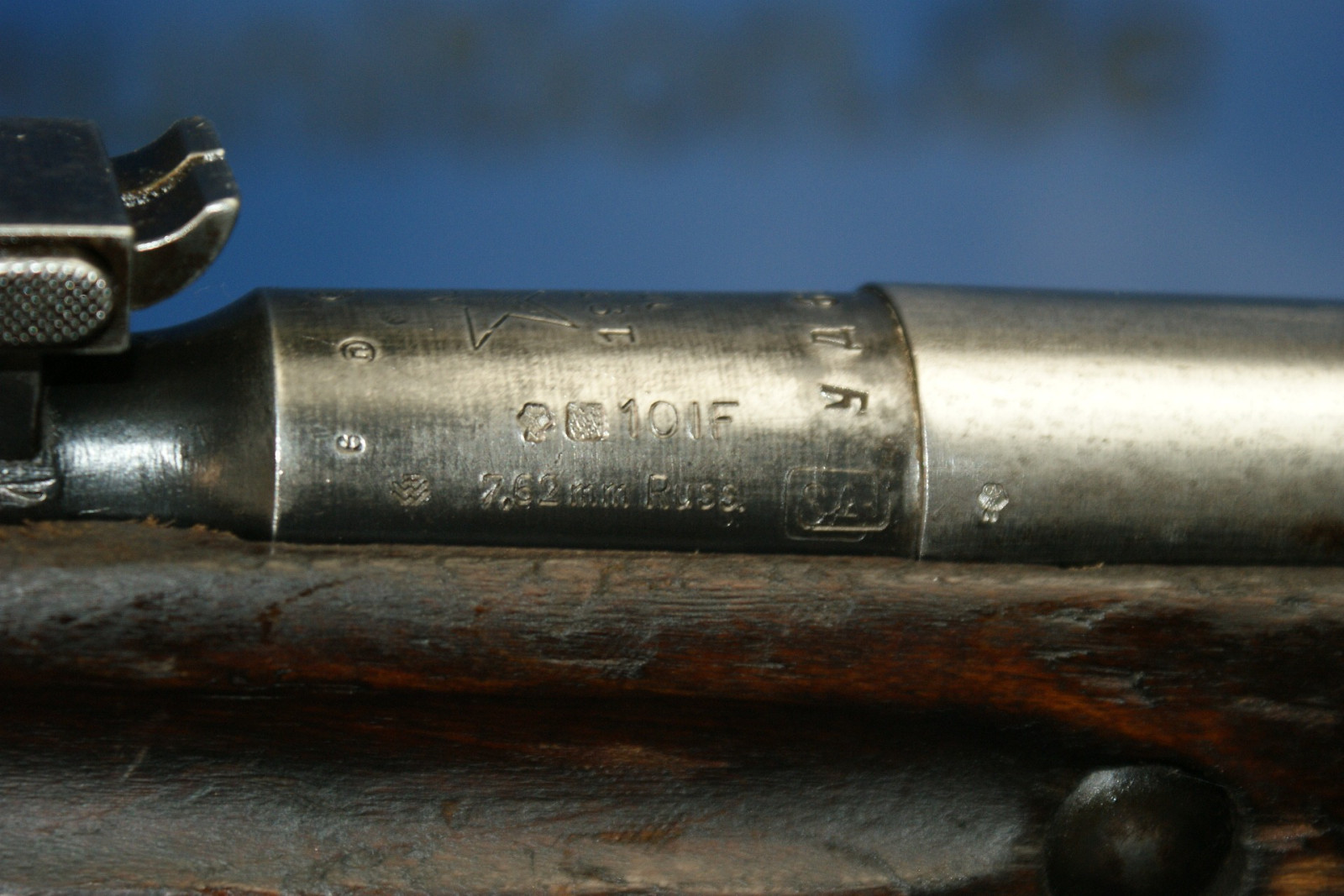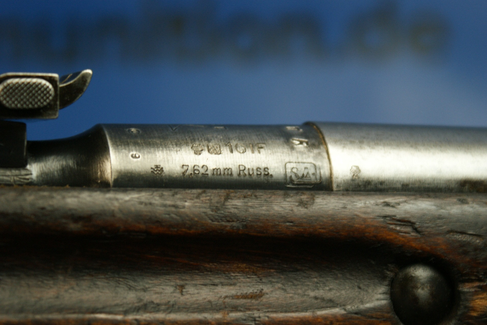Lager- und Gebrauchsspuren. Beutewaffe der Finnischen Armee ab 1942. Angepasster Lauf auf die D166 Patrone. Viserung vom M44. Lauf Seele wurde ca. 30 mm gekürzt um die Schussleistung zu verbessern.