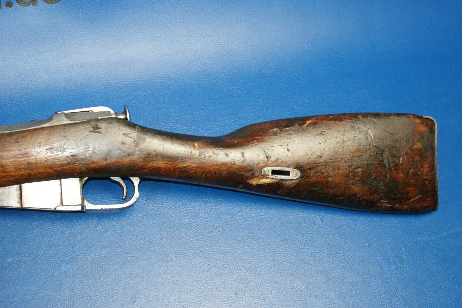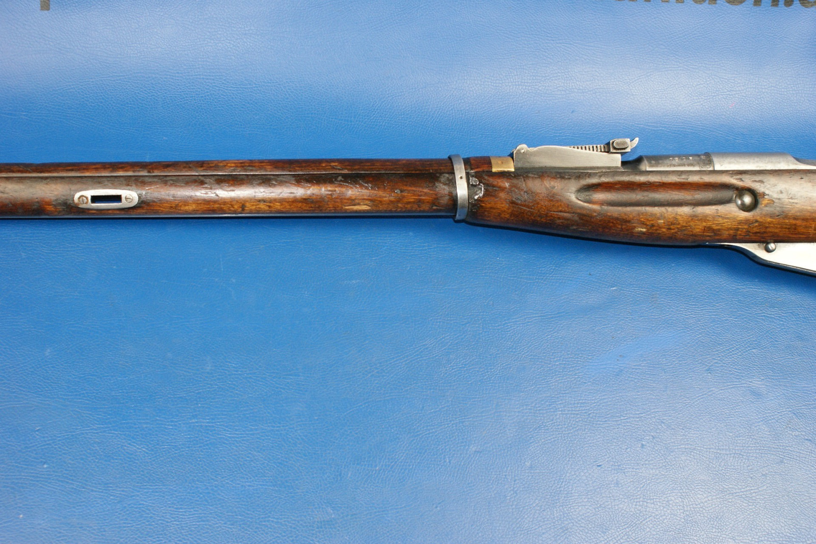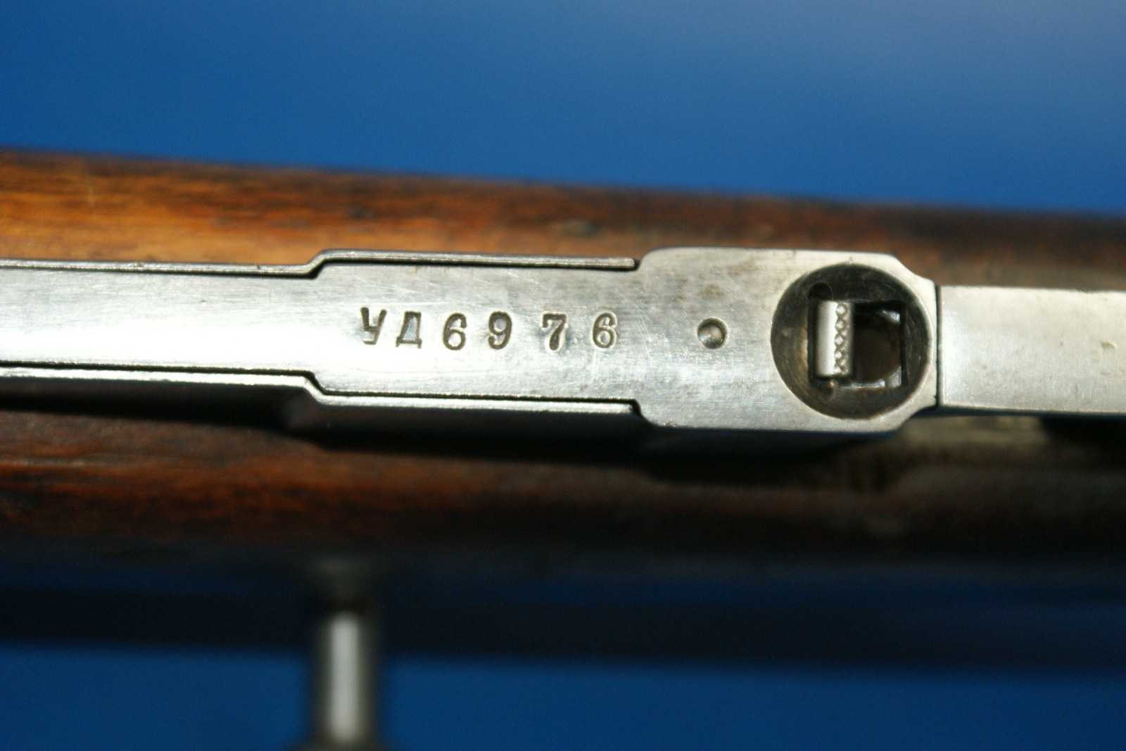 Lager- und Gebrauchsspuren. Beutewaffe der Finnischen Armee ab 1942. Angepasster Lauf auf die D166 Patrone. Viserung vom M44. Lauf Seele wurde ca. 30 mm gekürzt um die Schussleistung zu verbessern.