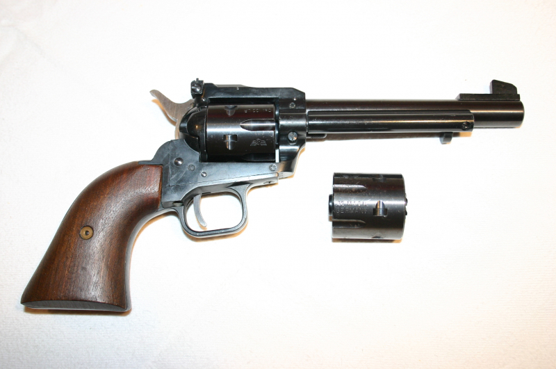 Rev. mit Wechseltrommel, eignet sich auch für Jäger. Vorteil ist das starke Kaliber. Waffen Nr. 791683, Hersteller HS. Der Lauf ist Blank, der
