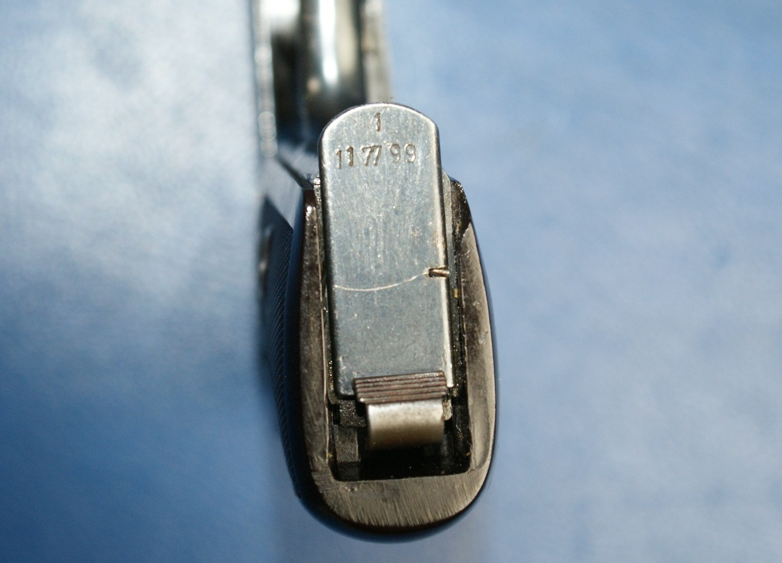 Lager- und Gebrauchsspuren. Waffe hat diverse Wehrmachtsabnahme Stempel. Mit nummerngleichen Magazin.
