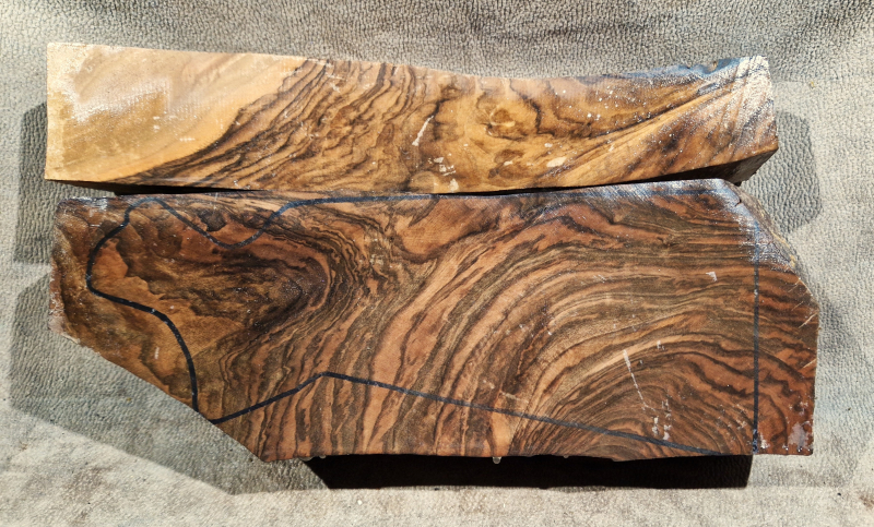 Das Holz wurde über vier Jahre natürlich getrocknet. Die Fotos wurden auf nassem Holz aufgenommen, um seine natürliche Schönheit besser zur Geltung zu bringen. Das letzte Bild zeigt die Maße – Länge/Höhe/Höhe. Die Holzteile wurden zum Schutz vor Holzschädlingen behandelt. Da Holz ein Naturprodukt ist, können kleine Risse oder kleinere Unebenheiten auftreten, die bei der Verarbeitung entfernt oder aufgefüllt werden können. Leider spreche ich kein Deutsch. Ich benutze Google Translate. Bitte entschuldigen Sie eventuelle Fehler im Text! Abgebildet ist die Linienführung der Blaser R 8