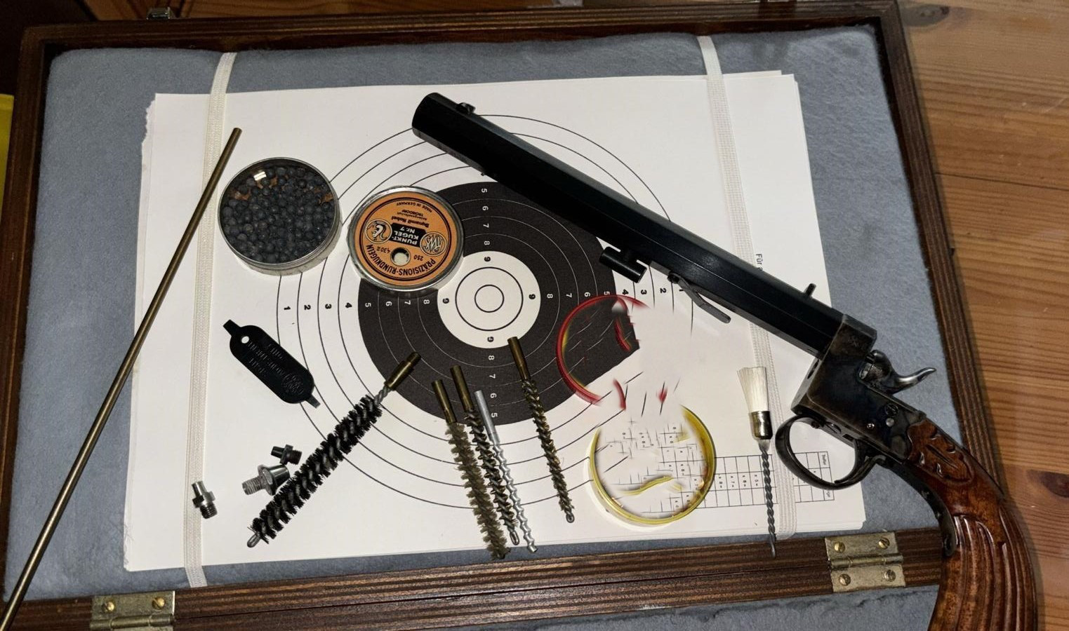 Diese Pedersoli Vorderlader Pistole ist m.M. nach in einem guten Zustand, Cal. 4.3 mm.