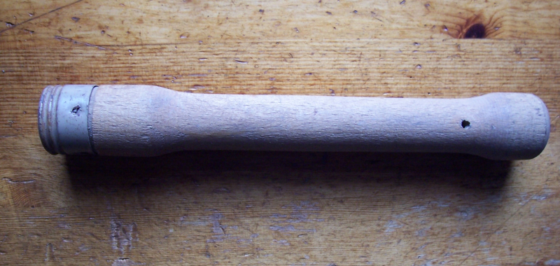 Holzstiel mit Gewinde ( in Einheitsgelb ) . Stempelung etwas undeutlich : 4 Fcc " Dreieck" .