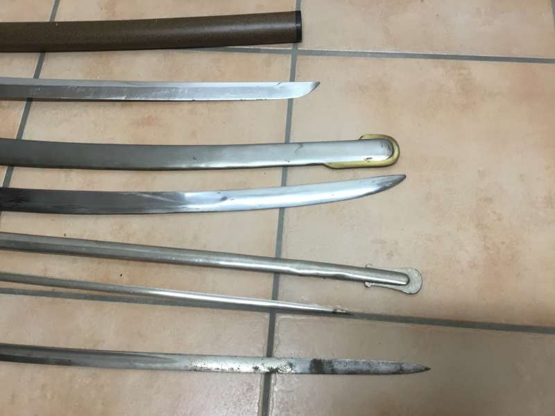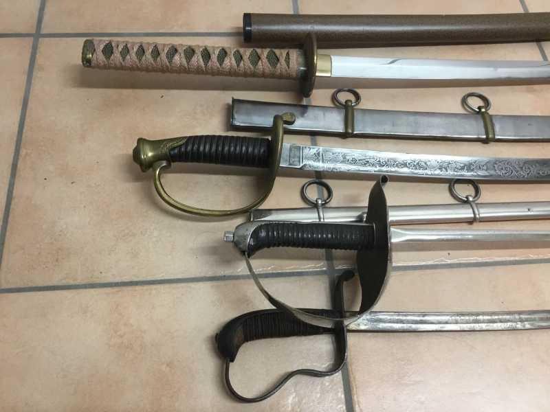 Vier Stück alte Säbel , zum Teil antik. Das Katana dürfte eher ein Deko Schwert sein.