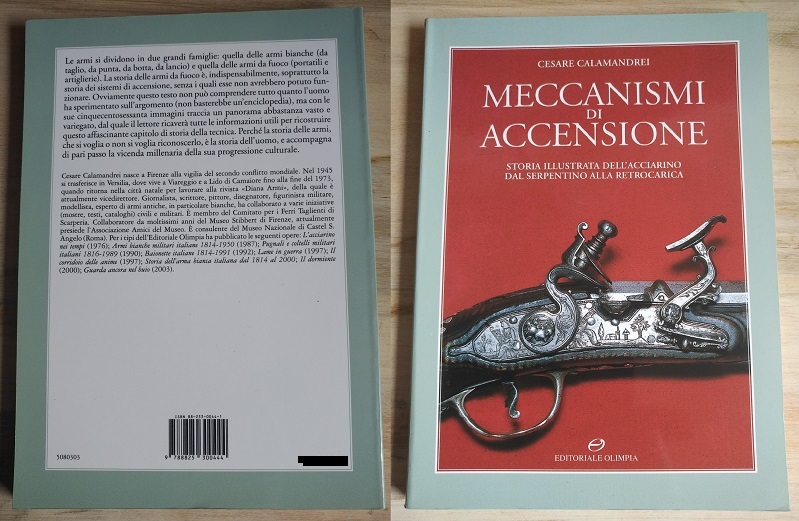 Edition 2003! Sie bieten hier auf ein schon lange vergriffenes, wunderbar umfassendes Buch über die Zündmechanismen von Vorderladern >MECCANISMI DI ACCENSIONE< von Cesare Calamandrei. Paperback, 261 Seiten, überaus reich bebildert! Es werden in vielen Bilder und anschaulichen Zeichnungen unzählige Schloßtypen gezeigt und in der Funktion erklärt, beginnt mit den Luntenschlössern, über das Steinschloß in seinen vielen Varianten und die Perkussionszündung, besonders interessant sind auch die Übergangstypen vom Stein- zum Perkussionsschloß, ein Extra-Abschnitt zeigt die Zündsysteme an Kanonen. Die Texte sind nur in italienischer Sprache!