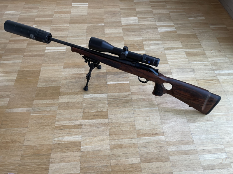 Verkaufe Waffe von meinem Cousin. Blaser R8 Success Kaliber .300 WinMag mit einem gefluteten Lauf, der ein Mündungsgewinde und einen A-Tec Adapter hat. Zeiss Victory HT 3-12×56 LA 60 mit Original Blaser Sattelmontage