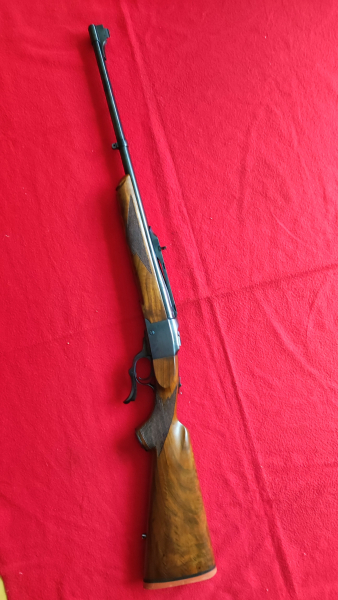 Wir bieten eine Blockbüchse RUGER No 1 im Kaliber .243 Win. Auf dem Lauf ist hinten eine Schiene zur Aufnahme eines Zielfernrohrs. Der Schaft ist höher klassigeres Amerikanisches Nußholz. Aus dem Gewehr wurde kein Schuss abgegeben. Es war im Besitz eines Sammlers.