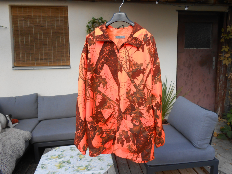 Zum Verkauf kommt eine Signaljacke von "Wald und Forst", gekauft bei Frankonia in der Größe L. Mangels Gelegenheit wurde die Jacke nur wenig getragen und kann als neuwertig bezeichnet werden. Die Jacke ist nicht gefüttert, wärmt also nicht. Sie fällt aber groß genug aus, dass man sich darunter entsprechend anziehen kann.