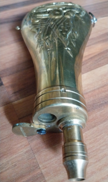 Zur Versteigerung kommt hier eine Originale Pulver Flasche aus Messing.