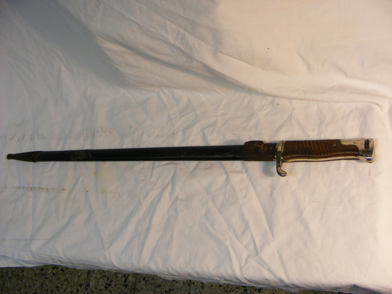 Langes Bajonett mit Lederscheide mit Scheide 68,5cm und ohne 66cm.