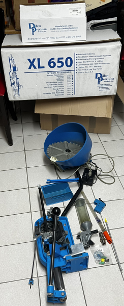 Biete wegen Umstellung auf die 1050 meine Dillon XL 650 mir Hülsenzufuhr , Pulverfüller inkl. der Matritze Zündhütchen Aufpick Röhrchen Wechselsatz für den Zündhütchen Setzer in Large ,montiert ist der kleine , Auffangbehälter für fertige Munition sowie einen Warner für ein leeres Zündhütchenmagazin er wurde geklebt aber hat die volle Funktion .