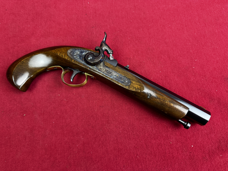 Es handelt sich hier um eineVorderlader Pistole, Kentucky, unbekannter Hersteller aus Spanien, der Lauf hat Züge und Felder.