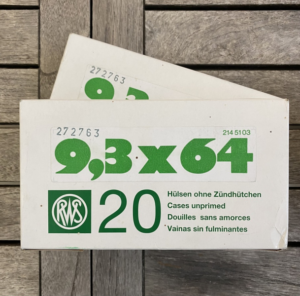 Sie bieten auf 80 Stück Originalhülsen für das Kaliber 9,3x64 von RWS in zwei gleichlautenden Chargen a 40 Stück (siehe Fotos).