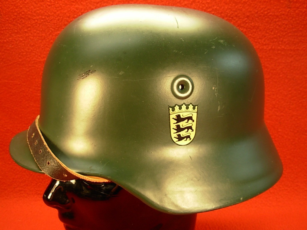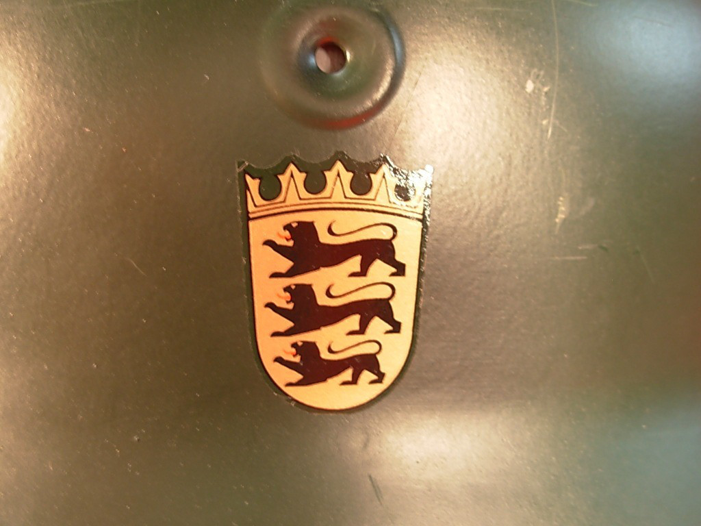 Württemberger Polizei Stahlhelm – schönes Emblem – große Größe – –- Zustand siehe Bilder . Artikel stammt aus Sammlungsauflösung. Bei Fragen bitte Mail-