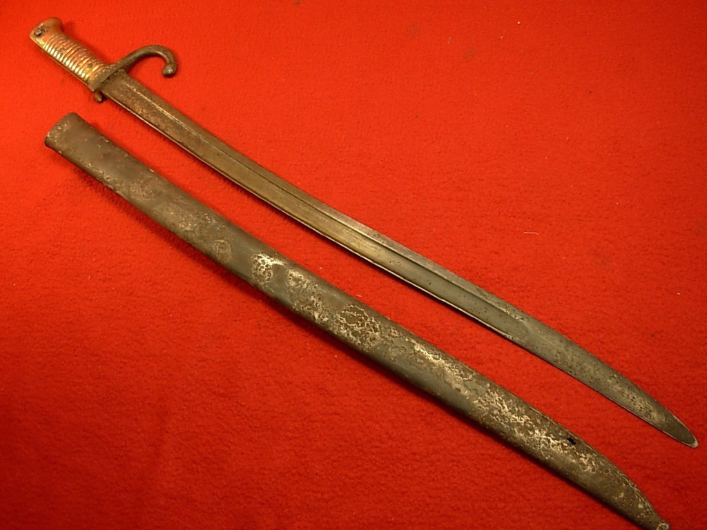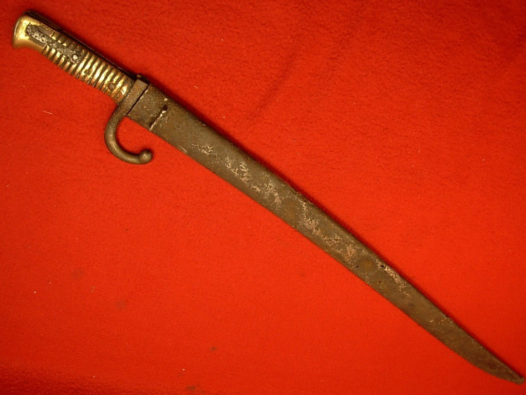I.WK – Württemberger Bajonett – Chassepot 1866 – Schlachtfeldfund – Griff mit Württemberger Stempel – Laufring entfernt –