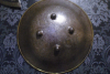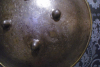 Bite einen schönen indischen Dhal. Prunkschild)Durchmesser ca 46cm. Eisen gestochen vollverziert mit floralen Verzierungen, Messingtauschierung stark berieben.
