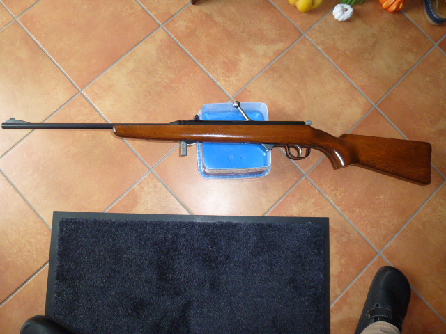 Korn Typ A, aber Ausführung ohne Korntunnel. Dazu ein original 12er Anschütz Magazin. Zustand: Siehe Fotos, Rostfrei, Schaft ohne Brüche/Risse usw.