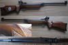 Das Luftgewehr ist in gebrauchtem Zustand. Am Laufmantel ist die Brühnierung etwas abgegriffen und kleine Roststippen sind sichtbar. Der Schaft hat normale Gebrauchsspuren. Am Kolbenhals ist ein Spannungsriss sichtbar (siehe Bild). Kolbendichtung und Laufdichtung sind neu. Die Schussleistung ist sehr gut. Privatverkauf von gebrauchter Ware, keine gesetzliche Gewährleistung. Versandkosten 11,5€ (innerhalb der BRD).