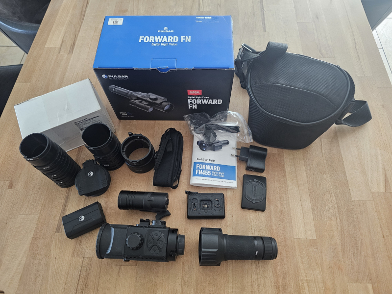 Verkaufe wenig benutztes Pulsar FN455 Vorsatzgerät mit vollständigem Zubehör (Okular, IR-Strahler, Akku, Ladegerät, allen Abdeckungen usw.)