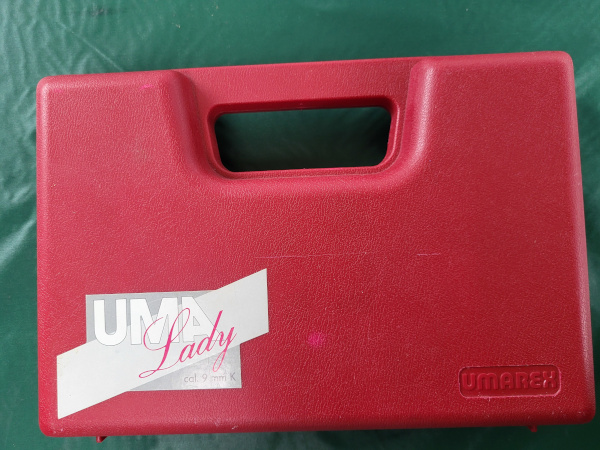Sie bieten auf einen Neuwertigen UMA - Lady Revolver im Cal. 9mm RK, Originalwaffenkoffer in Rot, Bürste, Abschussbecher, Anleitung anbei.