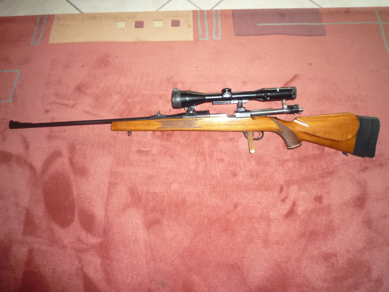 Verkaufe eine Voere „AKAH-Merkur-Super“ im Kaliber 6,5 x 68 so, wie ich sie vor einiger Zeit selbst in EGun ersteigert habe. Gesamtlänge (mit aufgeschobener Gummischaftkappe): 119 cm. Länge Schaftkappenende bis vorderer Abzug: 37 cm. Deutscher Stecher. System wie 98iger; Schiebesicherung auf dem Kolbenhals. 3-Schuss-Magazin. ZF Hertel & Reuss, Kassel, Macro Variabel 2 ¾ - 10 x 48 auf (Suhler-?) Einhakmontage. Absehen 4 (?) ohne Leuchtpunkt. Beim hinteren Fuß der Montage fehlt die Bohrung für die Querschraube in der ZF-Schiene. Passende Schraube ist beigefügt. Butler Creek Okularschutzdeckel. Klappkimme für 100 und 200 Meter. Über Schussleistung etc. kann ich keine Aussage treffen, da ich außer einem „Funktionsbeschuß“ nie mit der Büchse geschossen oder gejagt habe.