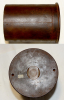 Seltene Stahlhülse von Feldhaupitze 18M, Kaliber 10,5 cm, späte 2-teilige Ausführung mit gerolltem Blechmantel, Hersteller "awr" = "Wiesbadener Ladeneinrichtungen A.G.", Hülsenlänge 15,7cm, Oberfläche rostig