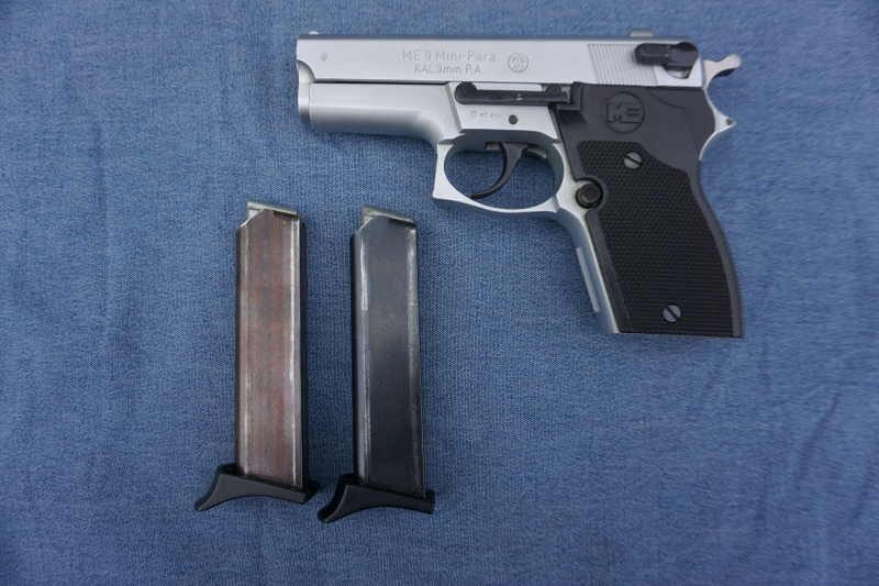Zur Auktion kommt ein sehr seltene Schreckschusspistole ME 9 Mini-Para. Das PTB Zeichen lautet 479!!! Kenner wissen um die hochwertige Verarbeitung des beschriebenen Revolvers. Sämtliche Teile wurden vernickelt. Somit ist die Pistole ein echter Blickfang. Die Pistole wurde nur sehr selten benutzt und befindet sich in einem fast perfekten Neuzustand. Mit im Lieferumfang ist ein zweites Magazin enthalten(siehe Bilder). Kaliber 9mm PA. Bei weiteren Fragen stehe ich Ihnen gerne zur Verfügung. Dies ist eine Privatauktion und somit unter Ausschluss sämtlicher Garantie oder Umtauschrechte. Bei Versand ins Ausland erhöhen sich die Versandkosten. FOREIGN BIDDERS VELCOME.. Viel Spaß beim Bieten.