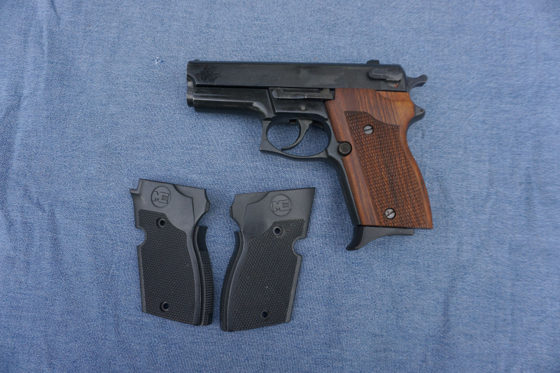 Zur Auktion kommt eine sehr gut erhaltene Schreckschusspistole. ME 9 Mini Para! brünierte Ausführung und mit sehr seltenen Holzgriffschalen. Das PTB Zeichen lautet 479!!! Wie Sie auf den Bildern erkennen können, sind die Kunststoffgriffschalen im Lieferumfang mit enthalten. Die Holzgriffschalen wurden vor einiger Zeit mal montiert. Diese sehen sehr edel aus. Die Pistole wurde nur sehr selten benutzt und befindet sich in einem fast perfekten Neuzustand. Kaliber 9mm PAK... Bei weiteren Fragen stehe ich Ihnen gerne zur Verfügung. Dies ist eine Privatauktion und somit unter Ausschluss sämtlicher Garantie oder Umtauschrechte. Bei Versand ins Ausland erhöhen sich die Versandkosten. FOREIGN BIDDERS VELCOME.. Viel Spaß beim Bieten.