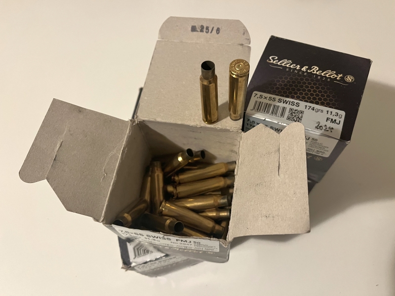 220 nur einmal geschossene Boxerhülsen im Kaliber 7,5x55.
