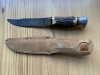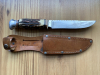 Gegen Höchstgebot veräußere ich dieses Vintage-Jagdmesser von "SCHNEIDTEUFEL"/Solingen in typischer Herstellungsweise. Das Teil ist insgesamt 21,5 cm lang, wovon die Klinge mit Sägerücken 11 cm einnimmt. Wie eigentlich immer ist der Griff aus Hirschhorn gearbeitet und am Griffende befindet sich ein Aluknauf. Geliefert wird das Messer in einer hellbraunen Lederscheide. Weil ich nicht gewerblich tätig bin: keine Garantie, Nachverhandlungen, Rücknahme des Artikels.