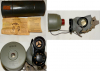 Gasmaske und Filter nahe neuwertig und ungebraucht. Die Büchse mit Altersspuren und 2 Dellen, der Trageriemen fehlt.
