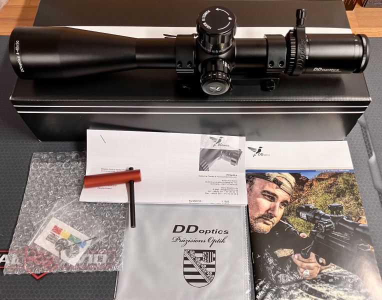 Verkaufe ein gebrauchtes DDoptics DDMP Zielfernrohr Moa 4-40x50 1/8 Moa Verstellung inkl. OVP/Rechnung & EraTac Blockmontage.