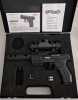 Ohne Munition oder CO2-Kapseln, jedoch im Koffer. Bedienungsanleitung für die Waffe (Mod. CP Sport) und das Visier sind dabei.