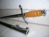 Biete aus meiner Sammlung gut erhaltenen NVA-Ehrendolch mit Gehänge und originaler Aufbewahrungsschachtel. Die Seriennummer vom Dolch ist 50150 und er trägt außerdem das Herstellerzeichen "Drei Türme im Dreieck". Am Griff sind leichte Verkratzungen vorhanden und der Karton ist etwas "zerissen", bzw. fehlt eine Seitenlasche. Auf Wunsch sende ich auch Detailbilder. Als Privatperson schließe ich jegliche Sachmängelhaftung aus. Viel Erfolg beim Bieten!