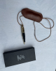 Handgefertigter Rehblatter aus massivem Messing – im Stil einer .308 Patrone, mit Lederscheide und edler Verpackung