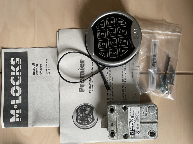 Verkaufe ein Zahlenschloss Rotobolt EM 20-20 mit Eingabeeinheit. Damit kann ein Standard-Schloss von Wittkopp (Doppelbartschlüssel) mit wenigen Handgriffen ersetzt werden. Bedienungsanleitung, Einbauanleitung und Zubehör dabei (s. Foto). Voll funktionsfähig- neu gekauft und war nur kurz in meinem eigenen Schrank verbaut.