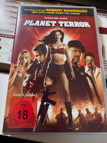 Zum Verkauf steht die DVD „Planet Terror“ (FSK 18, deutsche Version) – der kultige Action-Horrorfilm von Robert Rodriguez, ursprünglich Teil des Doppelprojekts Grindhouse (gemeinsam mit Quentin Tarantinos Death Proof).
