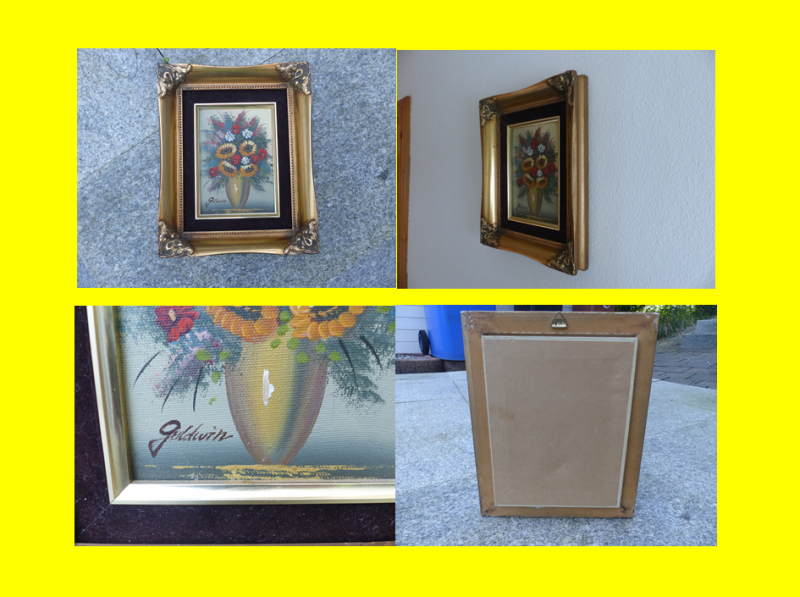 Verkaufe ein kleines Blumen Stillleben Gemälde mit massivem Holzrahmen in Gold, Bild ist signiert mit Goldwin.