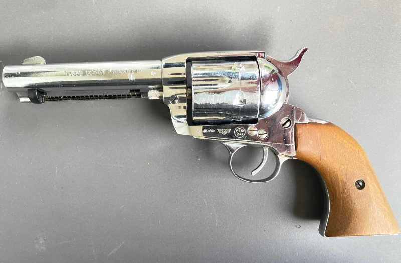 Aus meiner Sammlung steht zur Auktion ein verchromter Texas Scout ''Frontier'' in der kurzen Gunfighter-Ausführung cal. 9 mm Knall. Den Revolver gibt es nicht mehr neu zu kaufen, daher ein selten gewordenes Sammlerstück.