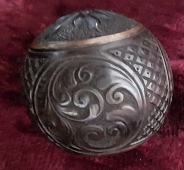 Ich biete handgraviert Verschlusskugel - Kammergriffkugel_Plastisch tiefe Alpengebirgsblume Gravur im Goldenringe mit feine Fischhaut nach Seite und Arabeske - Metal - für alles Waffen zbs.Blaser/Merkel/Sauer