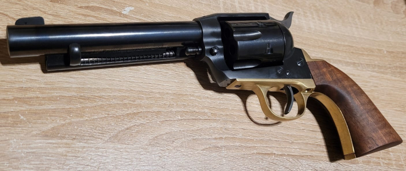 Angeblich wird dieser LEP Revolver nicht mehr gefertigt. Ich möchte mich aber von diesen schönen Revolver trennen, weil ich leider nicht mehr die Zeit habe mich damit zu beschäftigen. Ich wollte eigendlich noch ein paar Sachen an den Revolver verbessern, z.B. alle scharfen Kanten vom Hahn brechen, einen verlängerten Schlagbolzen einbauen um die nervige Fallsicherung ausbauen zu können - leider fehlt mir aber die Zeit dafür. Vielleicht hat der neue Besitzer ja Lust darauf und die Zeit, den SAA den letzten schönen Feinschliff zu verpassen :-)