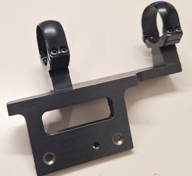 Diese Montage war auf einem K43 bzw. G43 montiert und dient der Aufnahme eines ZF4 oder ähnlichen ZF mit 30mm Rohrduchmesser. Es war auch ein ZF dort eingebaut. Die Montage ist ein moderner Nachbau und passt auf die Seitenschiene des Gewehrs. Muss aber augenscheinlich veschraubt werden.